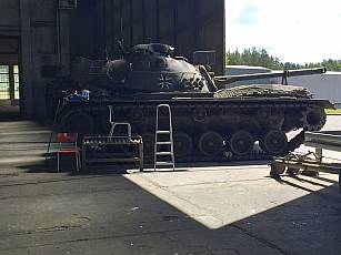 After the formalities had been clarified, the planning of the transport from LĂĽneburg to Augustdorf began quickly. However, it quickly turned out that none of the soldiers involved from Augustdorf had been trained on the M48. Through a long-term cooperation of one of the members of the MGS, Oberstabsfeldwebel GĂĽnter Schlueter, with the former head of the district liaison command in Detmold, Colonel d. R. Bernd Ehlebracht, it was known that he had once received training on the M48. From July 1976 to September 1977, Colonel Ehlebracht carried out his basic and full training in various battalions of the 6th Panzergrenadier Division in the Hamburg area and received his training here on the M48 A2C main battle tank with the 90 mm cannon. During his subsequent military exercises in his "old" company, the 2nd company of tank battalion 174 in Hamburg-Rahlstedt, he received training on the upgraded M48 A2GA2 with the 105 mm cannon. From 1981 he also served on this type of battle tank as a platoon commander in the 2nd company of the 633rd tank battalion. The A2GA2 had a more powerful on-board cannon and a more powerful fire control system, but the "hull" was the same. His technical expertise was therefore absolutely required. He was happy to comply with a request for support and so the two moved to LĂĽneburg on April 29, 2020. Here, Oberstabsfeldwebel SchlĂĽter received appropriate instruction in the technology of the M48 from Colonel Ehlebracht, so that he could then prepare it for loading (Figs. 4 - 6).