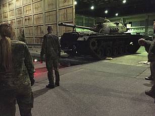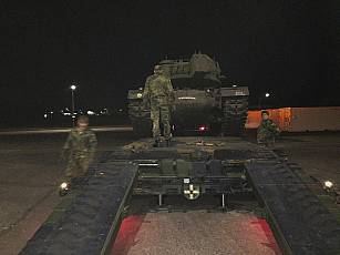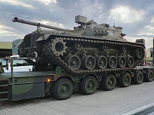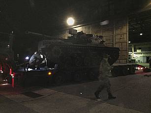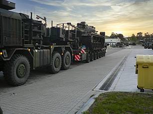 On May 13, 2020, a small work detachment moved to Lüneburg and prepared the M48 for transport to Augustdorf (pictures 7 - 9). After a busy day, the final activities for the next day were discussed (Fig. 10). After the final preparations were completed on May 14 (Fig. 11), the loading onto a heavy-duty transporter (SLT) "Mammut" by the 2nd company of Supply Battalion 7 from Augustdorf began at 11:55 p.m. (Figs. 12 - 15). At 12:30 a.m. on May 15, the SLT and its escort vehicle left Lüneburg (film) and reached its destination, the Field Marshal Rommel barracks in Augustdorf, at 4:45 a.m. (film), where they were then unloaded in relocated the technical area of Panzer Battalion 203 (Pictures 16 – 18, film).