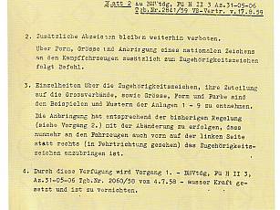 The turret number 922 (Fig. 31) shows that this M48 battle tank is the tank of the battalion commander of the 214th tank battalion, the so-called mobile command post. The tactical sign (Fig. 32) shows that this tank belonged to the 1st company of the 214th tank battalion. According to an order from the Federal Ministry of Defense dated August 17, 1959, this type of tactical sign was to be attached to all service vehicles (Figs. 33 and 34). The signs consisted of circles and rhombuses of different colors. In addition, colored triangles and semicircles were added. These differed not only from division to division. Even the brigades and even their battalions had different signs in shape and color. This system was so confusing that the then Federal President Theodor Heuss, who had to approve this order, noted on his first page "Who only thought that up".